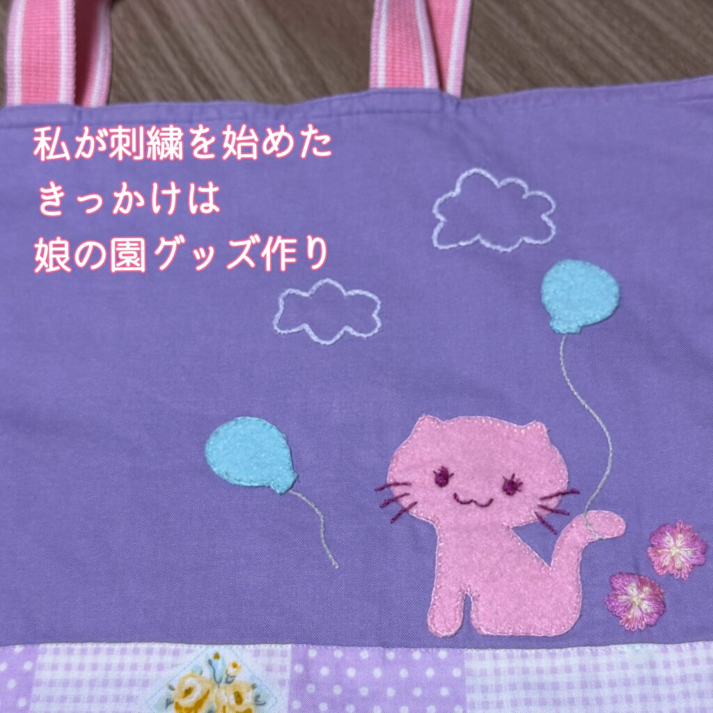 私が刺繍を始めたのは娘の園グッズを作ろうと手芸本を選んでいた時のこと。
