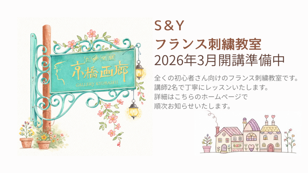新しい刺繍教室については詳細が決まり次第、こちらで改めてご報告いたします。