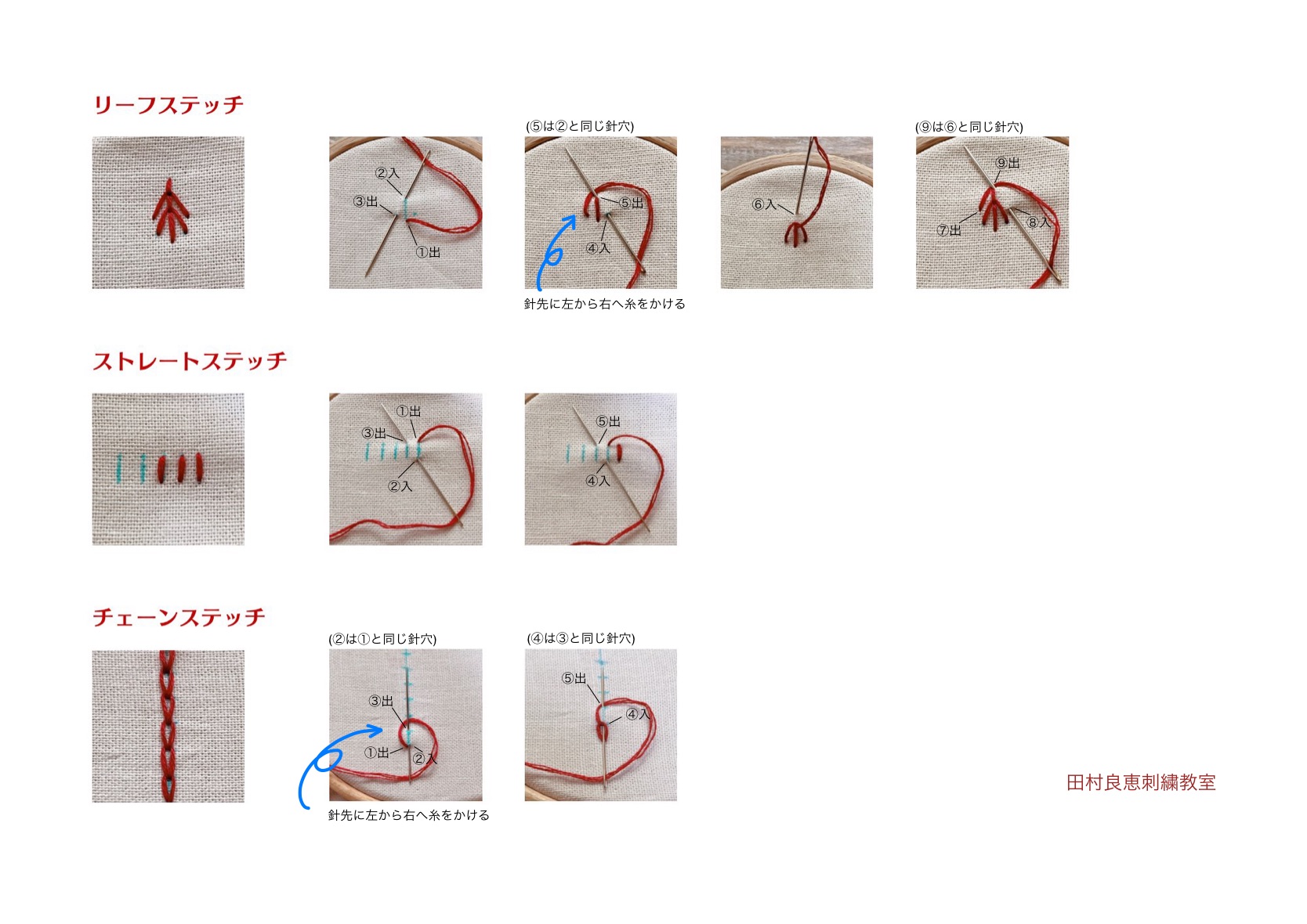 ほとんどの生徒さまが初級課題制作をしながら刺繍の基本を学ばれています。