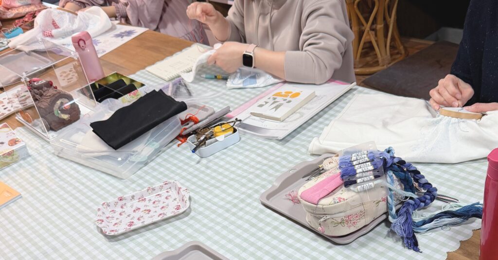 見学では、制作する作品を一緒に決めたり、刺繍に必要な道具についてご説明いたします。