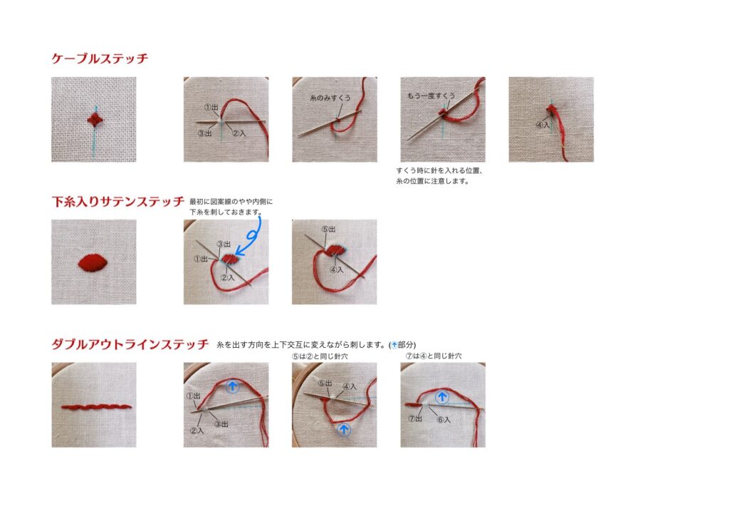 (↑ケーブルステッチの刺し方は、こちらのステッチ解説を参考にしてください)